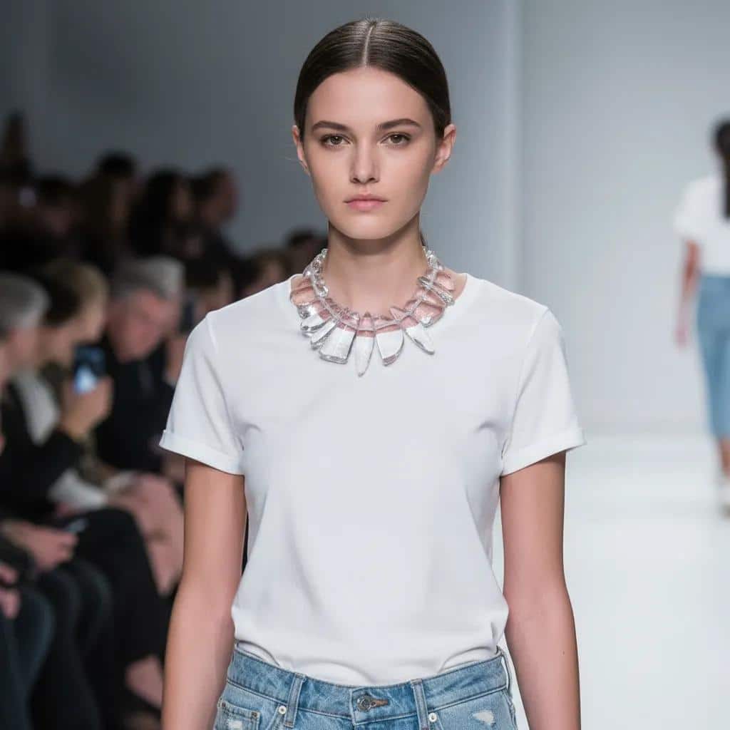 The transparent aesthetic of the chunky necklace makes it a natural companion for any color palette or fabric, seamlessly complementing vibrant prints, crisp whites, soft pastels, or dark tones. Whether layered over a sleek black turtleneck or worn with a breezy summer dress, this chunky necklace offers timeless adaptability with modern flair.